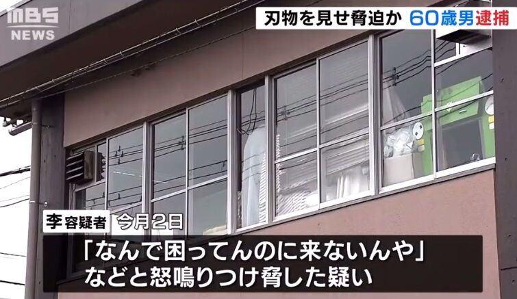 李容疑者は9月2日に八尾市清掃庁舎内で、環境事業課の職員に対して刃渡り約13cmの包丁を見せながら