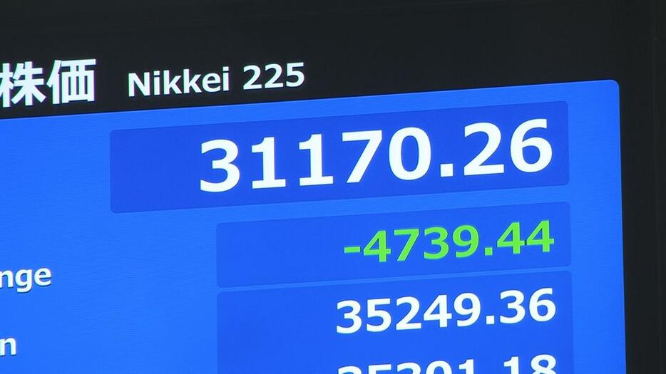 日経平均株価 一時4700円超下落 ブラックマンデー翌日超え 過去最大の下げ幅