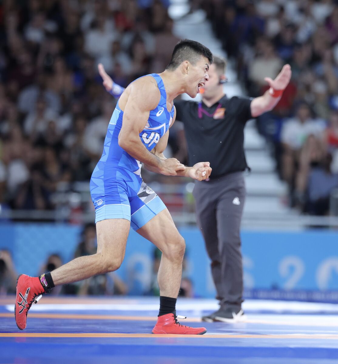 男子グレコローマンスタイル60キロ級準決勝で21年東京五輪銀メダリストの文田健一郎(ミキハウス)は、世界選手権2連覇中のジョラマン・シャルシェンベコフ(キルギス)を4―3で下し、決勝に進出。銀メダル以上が確定した。6日(日本時間7日)に行われる決勝では昨年の世界選手権で対戦し、3位となった曹利国(中国)と対戦する。