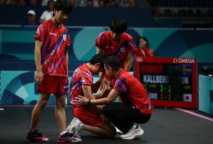 卓球男子団体戦の準決勝で、日本はスウェーデンに約3時間半に及ぶ死闘の末に2─3で敗れ、3位決定戦に回った。16年リオ銀、21年東京五輪銅に続く3大会連続の表彰台を目指し、9日午前10時(日本時間午後5時)から韓国の日韓戦に臨む。