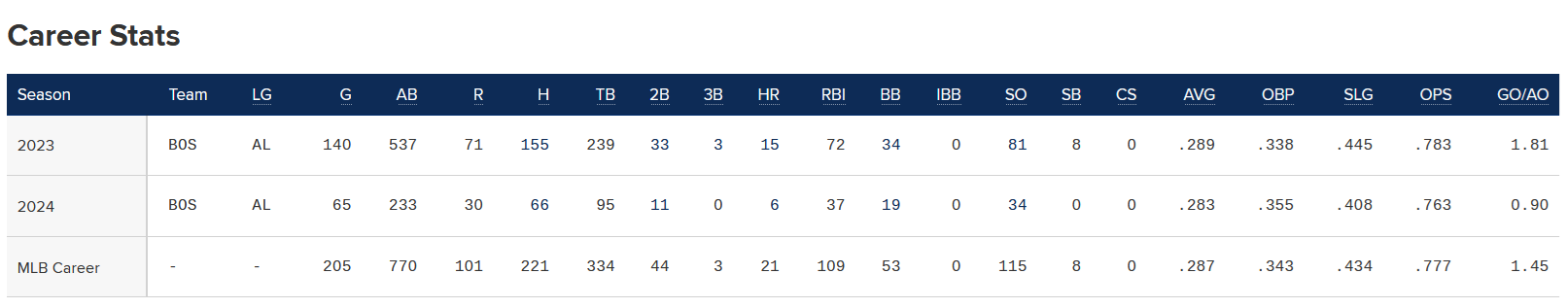 メジャー通算 2年 841打席 打率.287 21本 出塁率.344 OPS.778 8盗塁