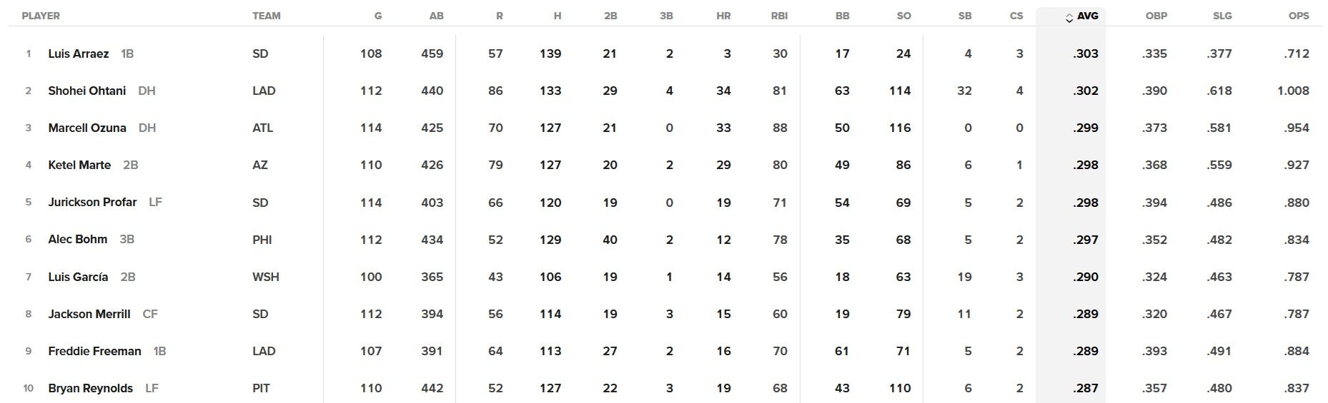 【悲報】大谷翔平、WAR1位に続いて首位打者も奪われる