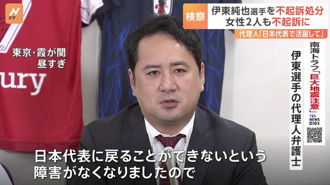 【速報】サッカー伊東純也選手を不起訴処分 大阪地検が発表伊東選手側から”逆告訴”された女性2人も不起訴(MBSニュース) – Yahoo!ニュースhttps://news.yahoo.co.jp/articles/91d086b20daa697c5273a920b59a65bd24dd0bda