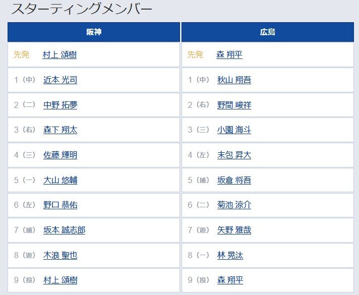 【阪神対広島17回戦】6(左) 野口 恭佑 7(捕) 坂本 誠志郎