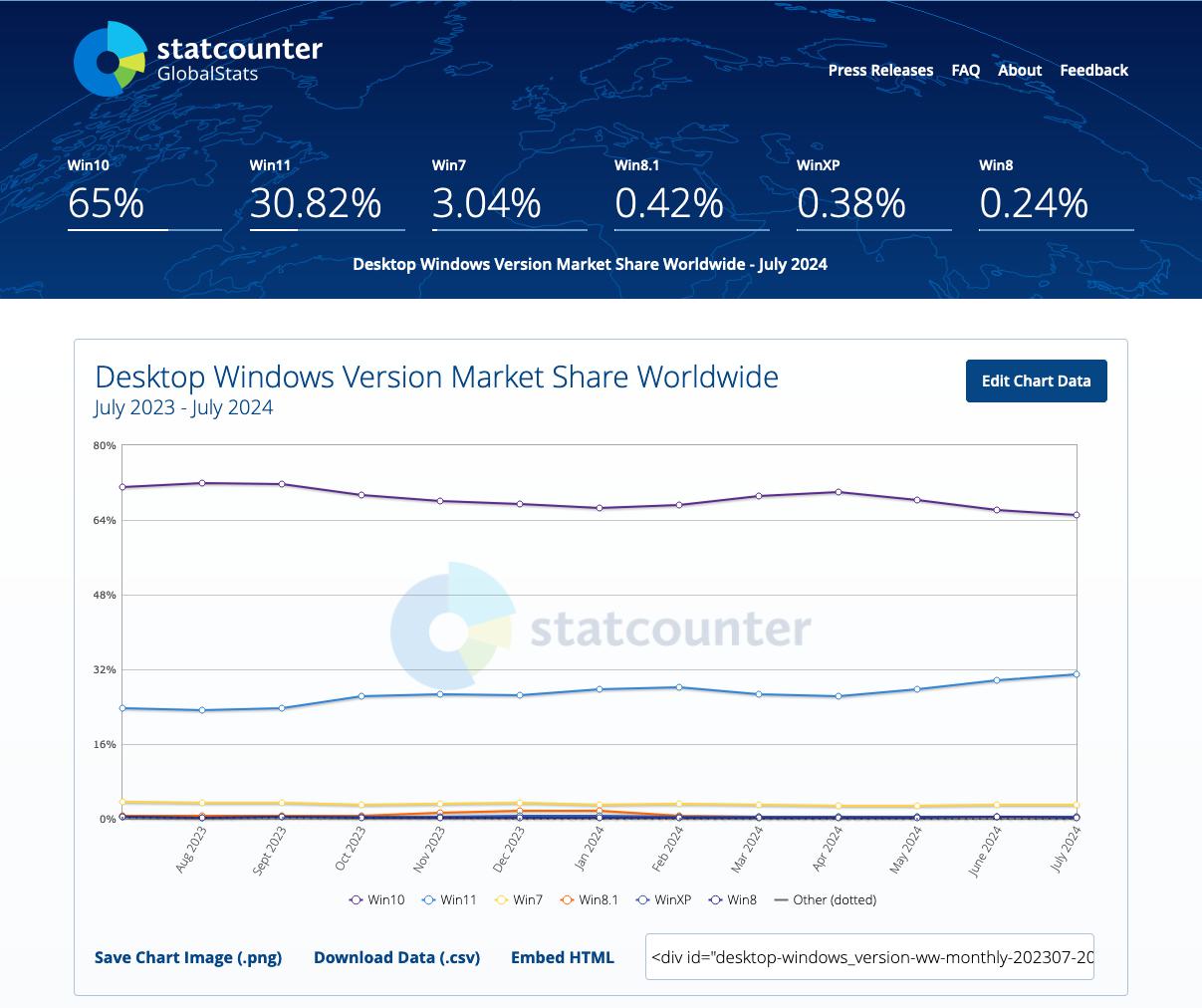 Windows 11が初めて30%超えを達成、Windowsシェア動向