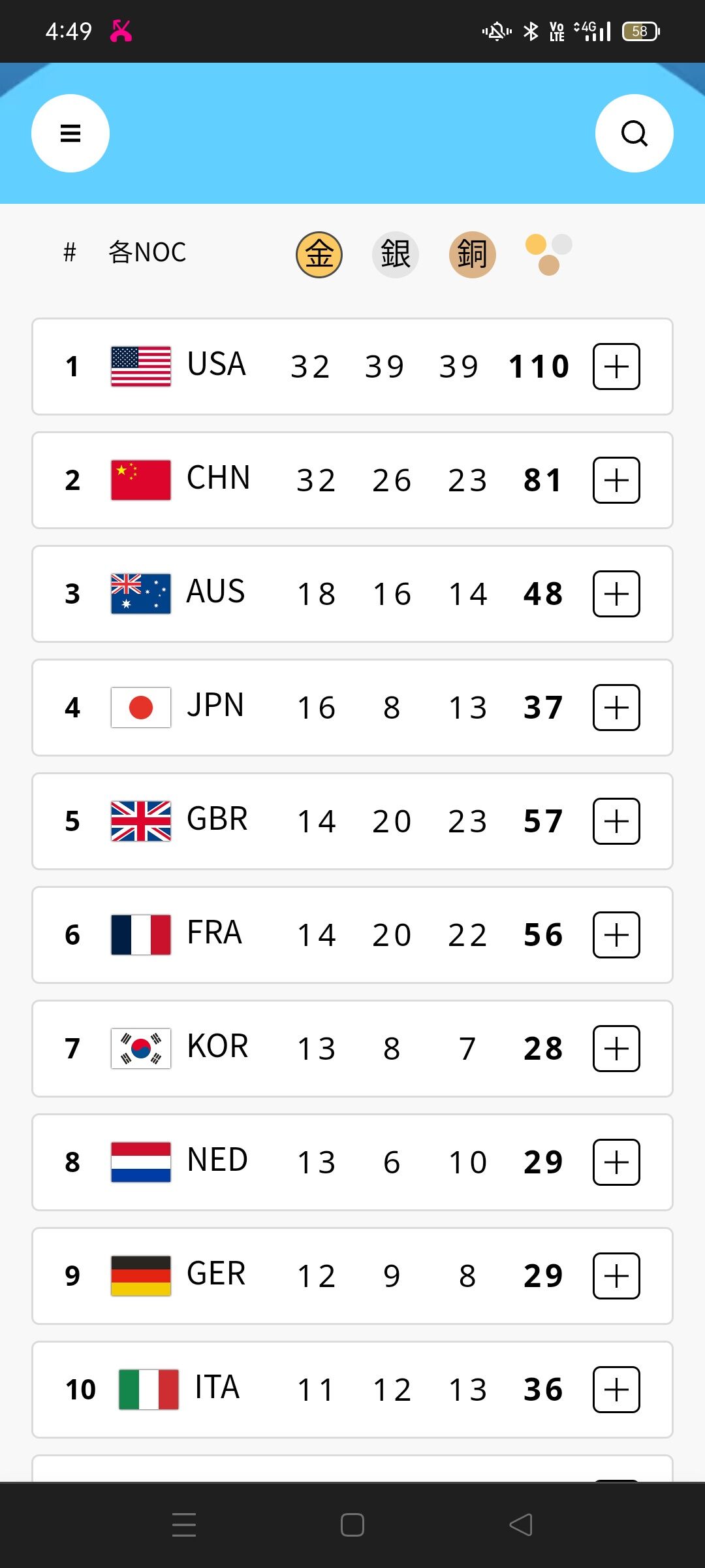 【朗報】メダル獲得数ランキングで日本が4位浮上 開催国フランスを抜く