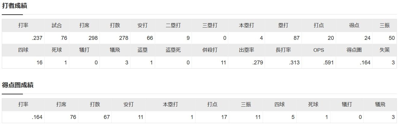 坂本勇人(36).237(278‐66) 4本 20点 併殺11 ops.591←このおっちゃんwww