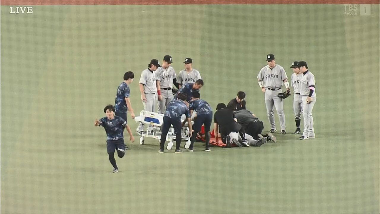 【中日対巨人19回戦】巨人・ヘルナンデスにアクシデント 守備で左手首付近を負傷 球場に担架が運ばれスタンドも騒然
