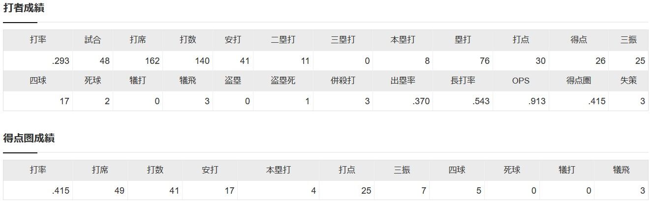 7月 .383(47-18) 3本 11打点 OPS.1.135