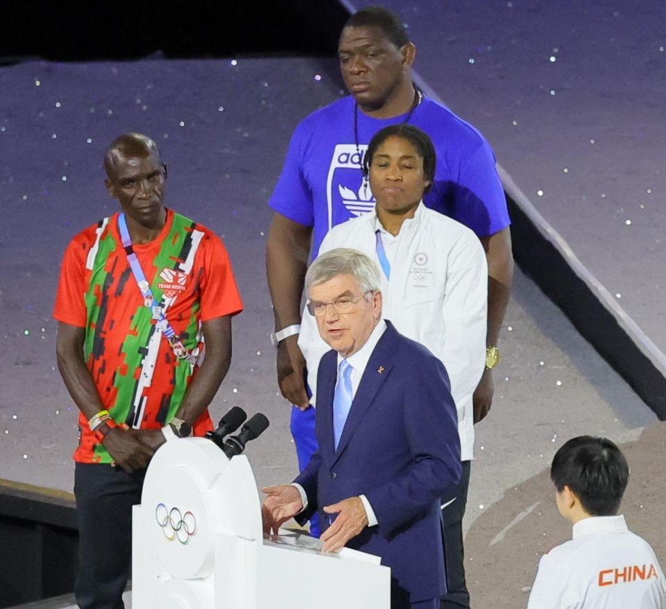 続いて、IOC・バッハ会長があいさつした。バッハ会長は「なんと素晴らしい舞台だったことでしょう。パリの街で、何百万人もの人がアスリートを祝福し、観客が雰囲気をもりあげてくれました」と語り、客席から拍手がわき起こると場内を見渡しながら満足げの笑み。