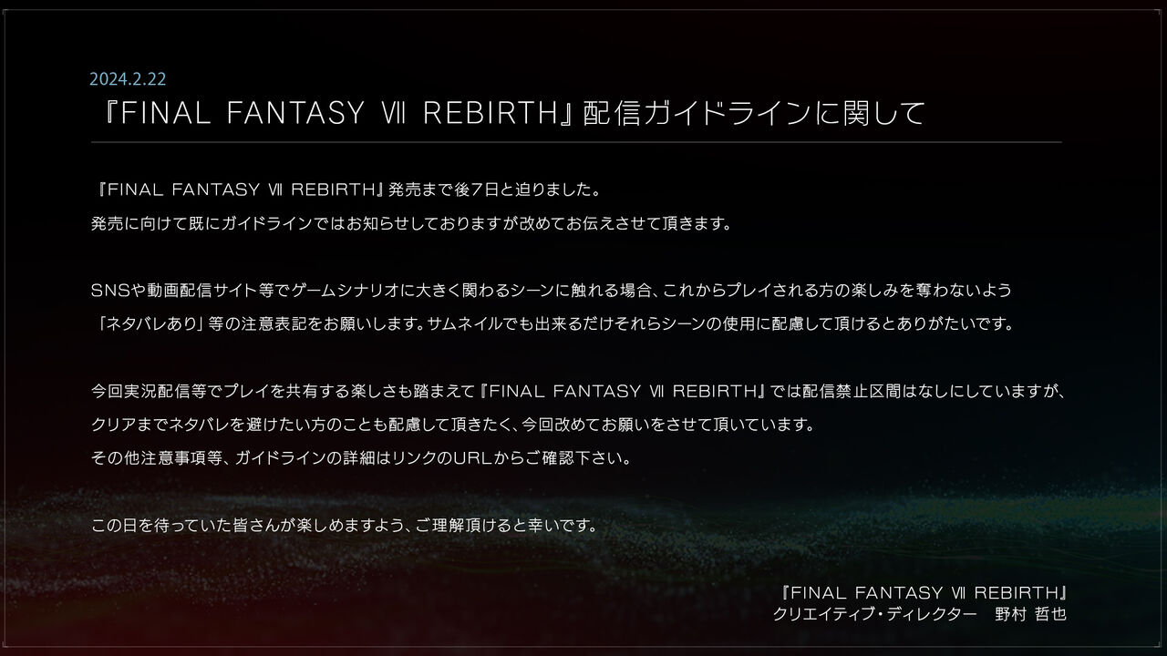 ゲームメーカー「これからプレイされる方の楽しみを奪わないよう、(実況配信の際には)自主的に「ネタバレあり」の表記をお願いします」