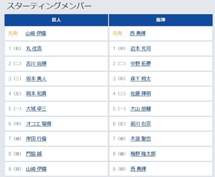 【巨人対阪神19回戦】3(三) 坂本 勇人 6(中) オコエ 瑠偉