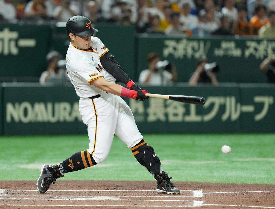 先頭の丸が中前打で出ると、続く吉川が犠打を成功。2死二塁で岡本和が打った三塁線ギリギリの打球が三塁・佐藤輝の適時失策となり、結果的にこれが決勝点となった。