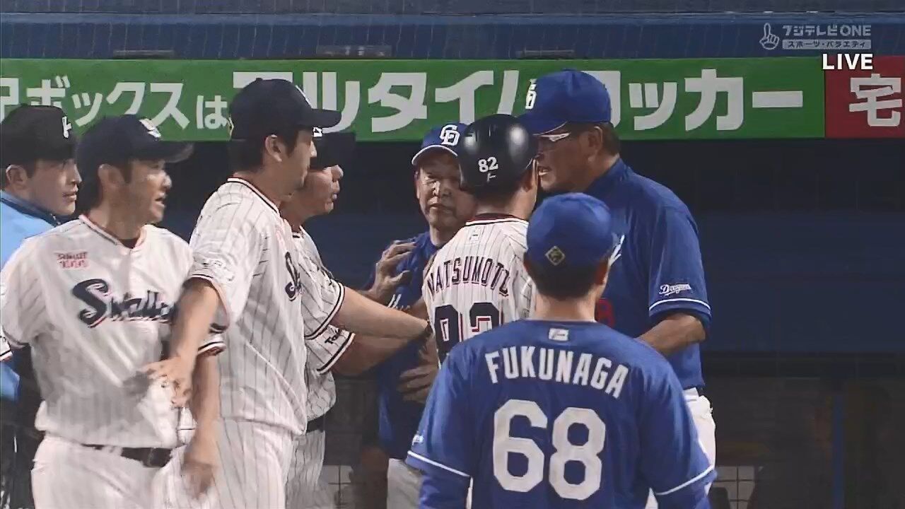 【ヤクルト対中日19回戦】ヤクルト 中日戦で乱闘騒ぎ 高津監督が岩田の四球に激高→中日・片岡ヘッドと言い争いに 立浪監督が止めに入る 警告試合に