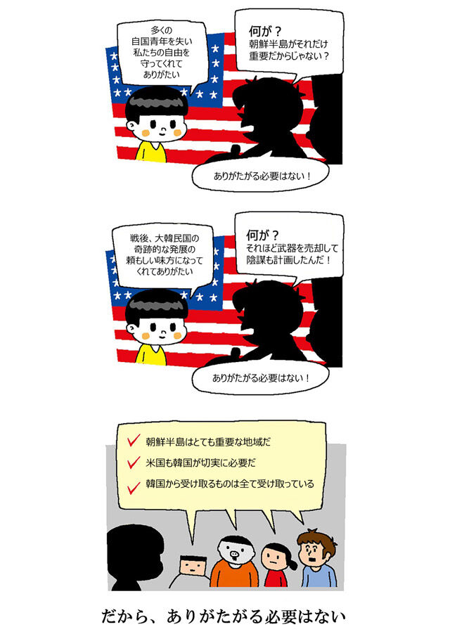 韓国に対する米国の好意は「米国の利益のため」だったかもしれないが、まずは「素直に感謝しよう」とのことだろう。