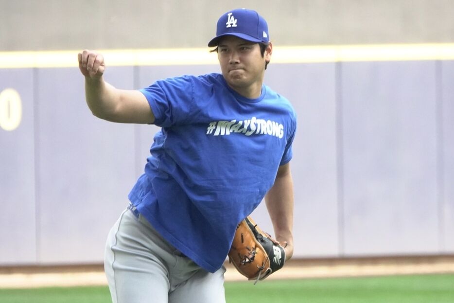 敵地・ブルワーズ戦の試合開始3時間前にグラウンドに現れると遠投などをこなした後、平地でキャッチボール相手が座った状態で投球した。時折、声を上げるほど力を入れて12球を投げ込んだ。