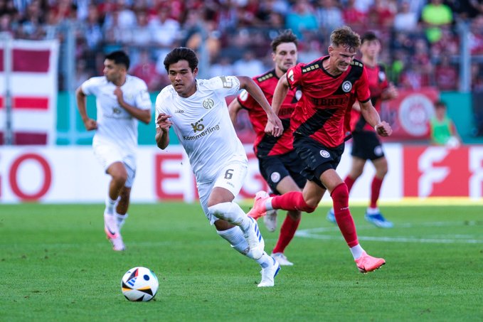 マインツ移籍の佐野海舟が公式戦デビュー! 120分間フル出場で、DFBポカール1回戦突破に貢献