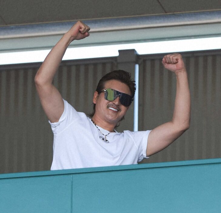 【第106回全国高校野球選手権大会第11日3回戦 西日本短大付0―4京都国際 ( 2024年8月17日 甲子園 )】 日本ハムの新庄剛志監督(52)が17日、甲子園を訪れ、母校の西日本短大付(福岡)と京都国際の試合を観戦した。白いTシャツに黒いサングラス姿で現れた新庄監督は、選手に向けて手を振る場面もあり、それに気づいた数人の選手も新庄監督に手を振る場面も見られた。また、来場に気づいたファンが「新庄さんーー!!」などと呼びかけ、新庄監督を一目見ようとバックネット裏に殺到。警備員が「座席にお戻り下さい」とアナウンスで沈静化を図った。警備員のアナウンスで事態は収拾しかけたが、パニック状態となり、新庄監督は一時退席した。その後は記者席の後ろにある放送席から貴賓席に移動。試合前のシートノックを興味深げに見つめる姿もあった。大会本部も「当初、記者席後方のタイガースアイで観戦する予定でしたが、新庄監督を見ようと、多数のお客さまがタイガースアイ近くの通路に押し寄せて危険な状況となりましたので、新庄監督には最上段のロイヤルスイートルームに移動していただきました」と発表する異例の事態となった。