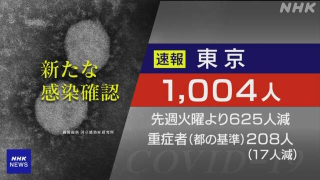 東京都内では14日、新たに1004人が新型コロナウイルスに感染していることが確認され、23日連続で前の週の同じ曜日を下回りました。