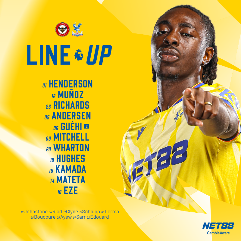 Henderson; Munoz, Richards, Andersen, Guehi(C), Mitchell; Wharton, Hughes, Kamada; Mateta, Eze.