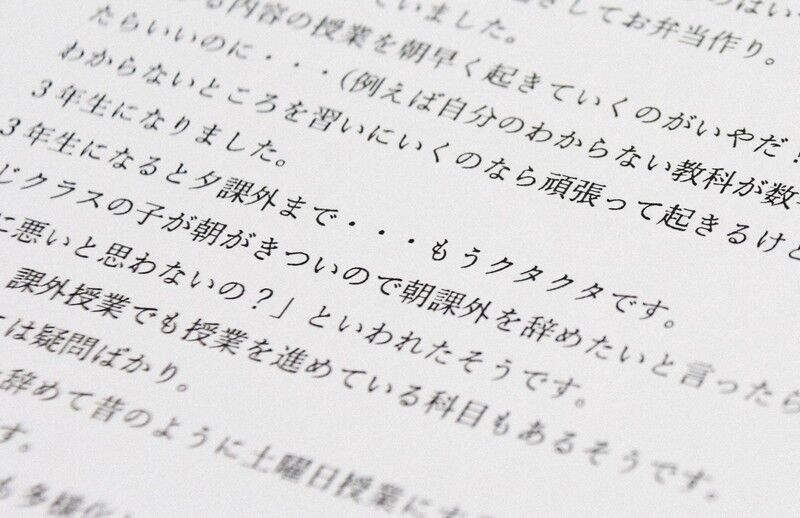 九州の多くの高校で長年続いている「朝課外(あさかがい)」の見直しを求める宮崎県内の生徒側の動きを記事(7月14日付朝刊)にしたところ、読者からさまざまな声が寄せられた。