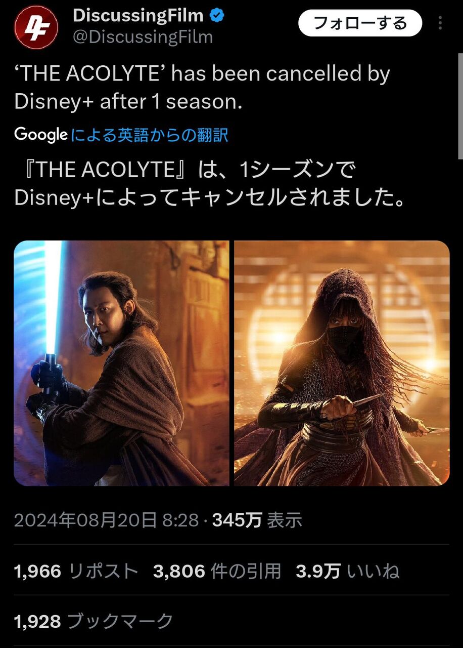 【悲報】1億8000万ドルかけて作ったスター・ウォーズの新作ドラマ、シーズン1で打ち切り