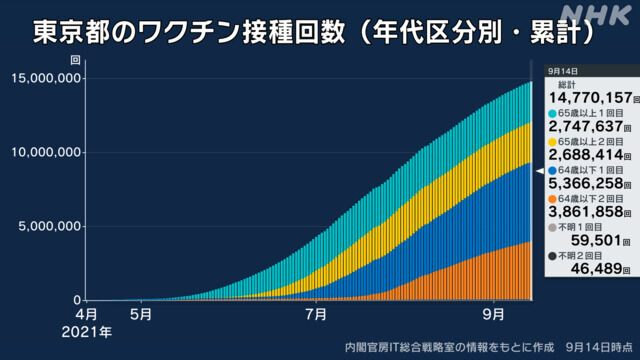 【新型コロナ】東京都で新たに1052人感染、20代 267人、30代 213人、40代 188人、65歳以上は66人 9月15日