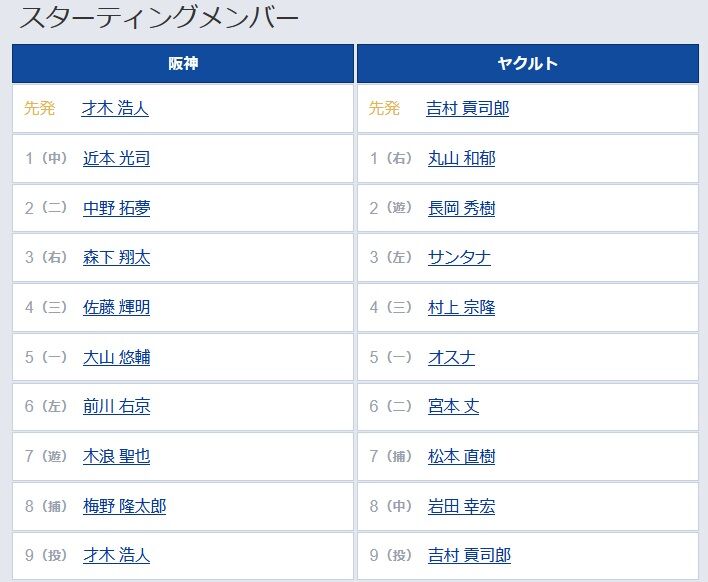 20日、#ヤクルト 戦(京セラ)のスタメンです!