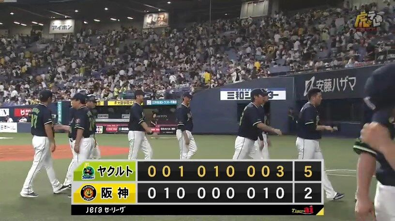 【阪神対ヤクルト19回戦】ヤクルトが5-2で阪神に勝利し連敗3でストップ!9回に山田哲人が決勝打!阪神は痛恨の逆転負け、9回に桐敷が決勝点献上