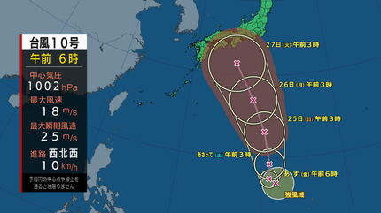 【台風情報】台風10号(サンサン)発生 27日頃に東日本~西日本の太平洋側直撃か 警報級の大雨・高潮・暴風・大しけのおそれ tbc気象台 …22日午前3時、日本のはるか南のマリアナ諸島付近で、熱帯低気圧が台風10号(サンサン)となりました。8月に入り6個目の台風発生です。台風はアジア各国… (出典:tbc東北放送) |