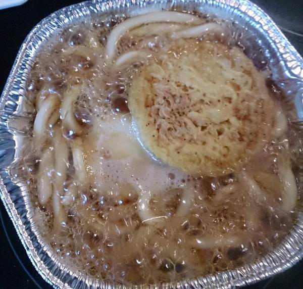 これ、半額の300円で作った具沢山・アチアチ・鍋焼きうどんね