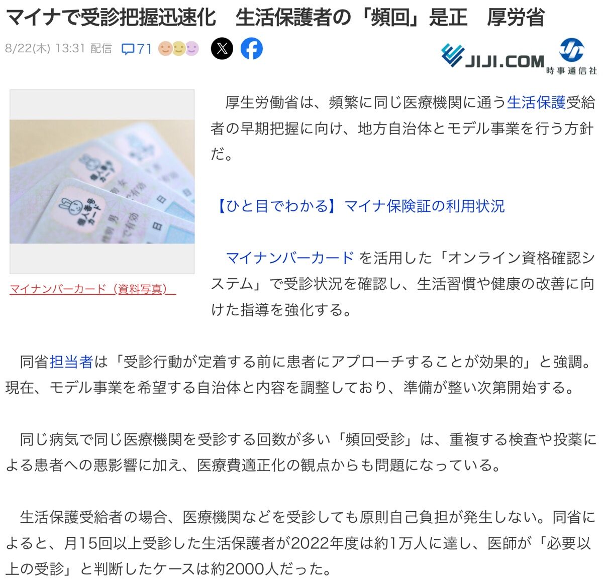 生活保護受給者「月に15回以上通院する人が1万人以上います」←税金の無駄にも程があるよな