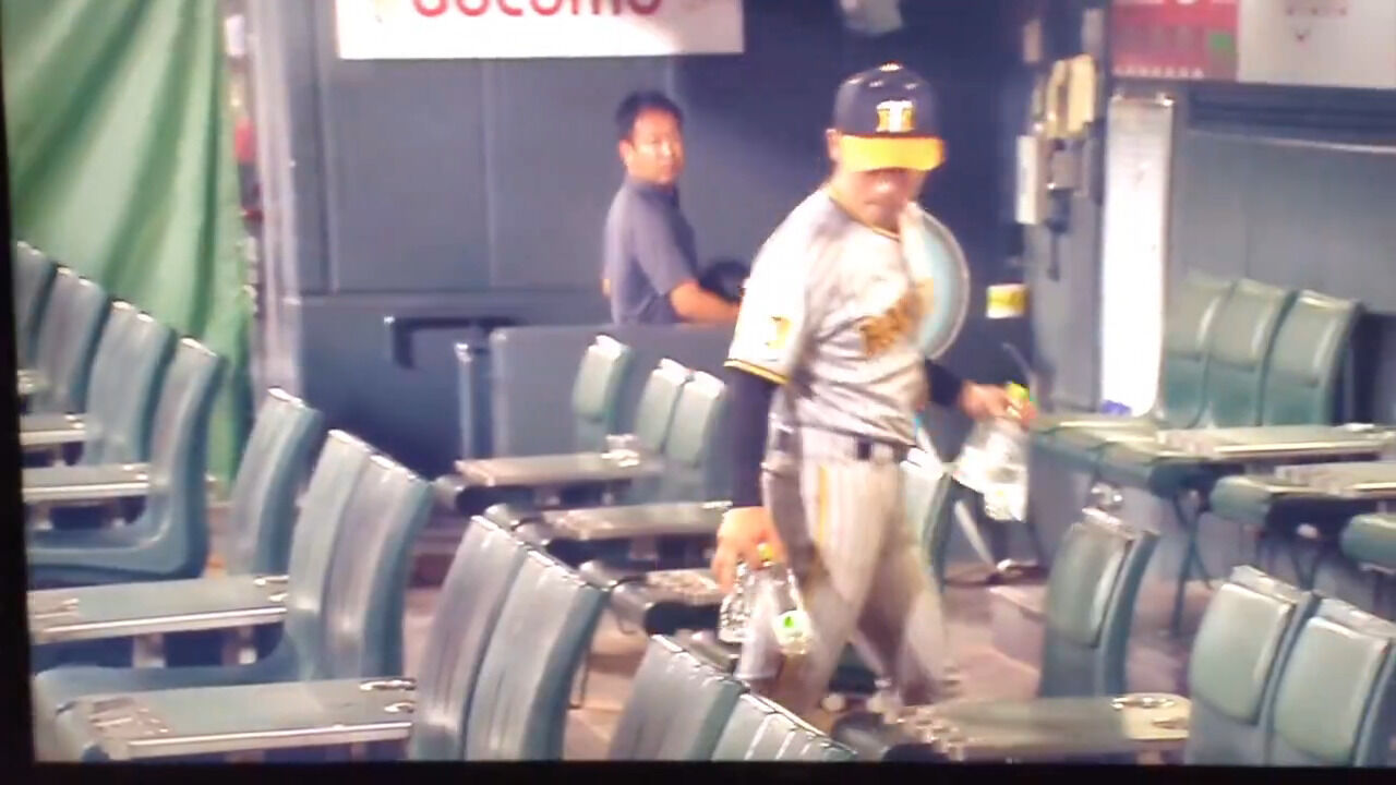 阪神・坂本誠志郎、試合後のベンチで他の人の残したペットボトルをお片付け