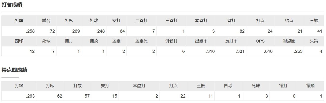 DeNA度会(21)72試合 .258 3 24 ops.640 ←率直な感想