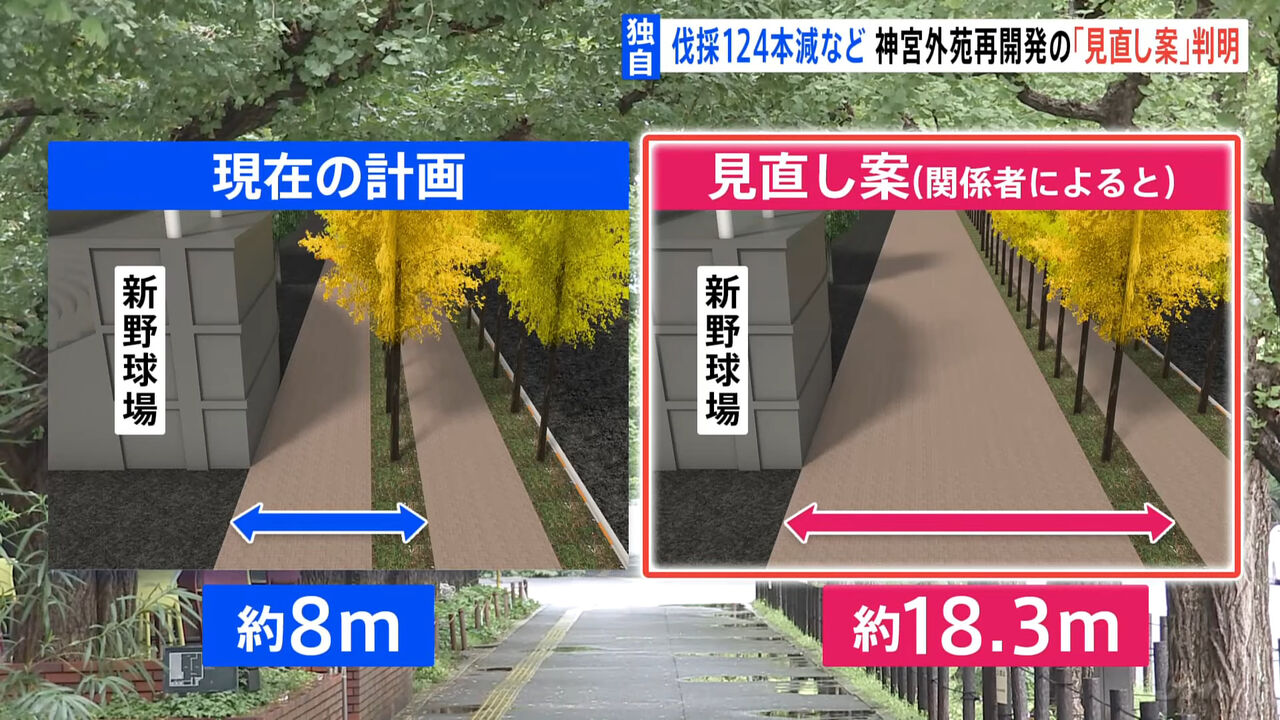 東京・明治神宮外苑の再開発をめぐり、伐採する樹木の本数が当初の計画よりも124本減るなどとする事業者側の見直し案が、JNNの取材で分かりました。