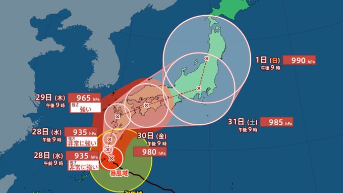 【悲報】台風10号さん、気圧940hPaのかなり強い台風に育ってしまう