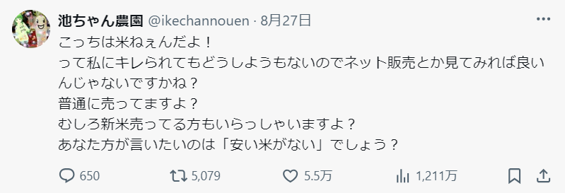 【悲報】農家さん「米ない米ないって言うけど、お前ら日本人が貧乏なだけじゃん!」炎上