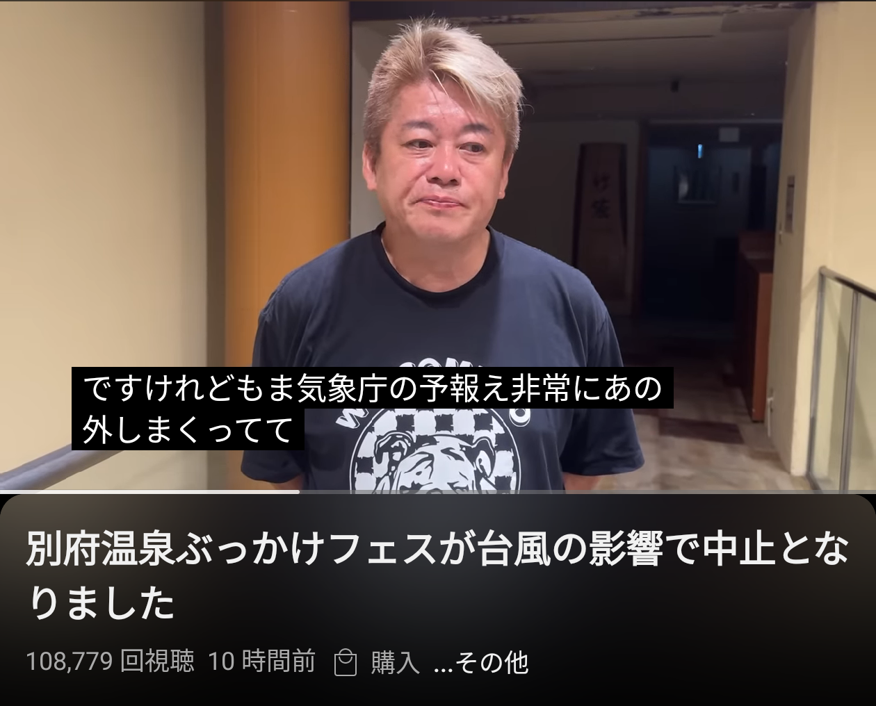 【台風】堀江貴文さん、ぶっかけフェス中止で恨み節「気象庁は台風予想ハズしまくり」