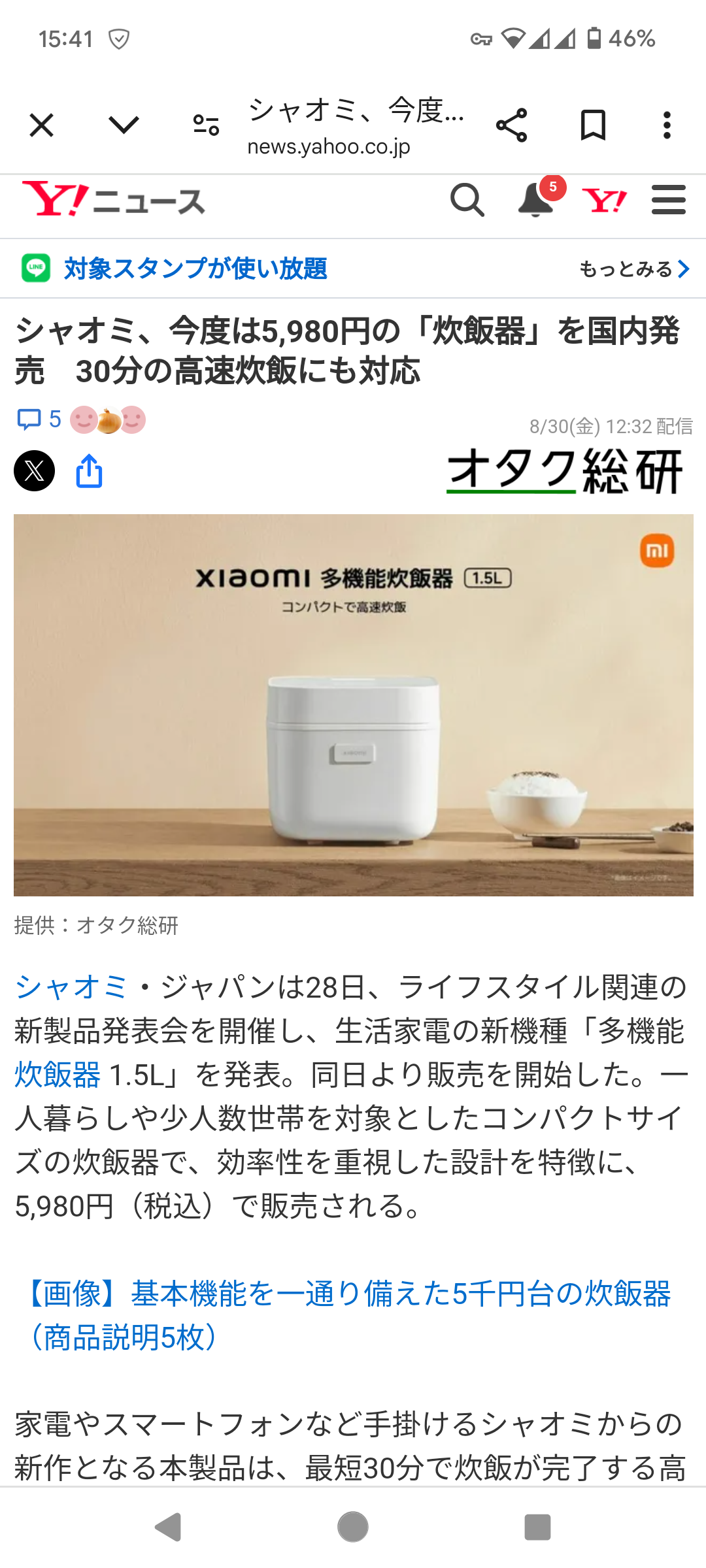 【朗報】俺たちのXiaomi、炊飯器の価格破壊を起こしてしまうwwwwww