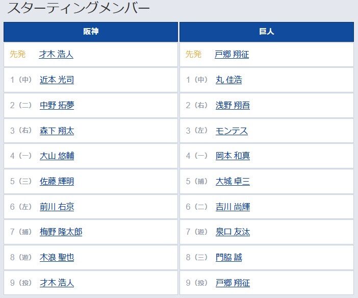 大城卓が捕手、泉口が遊撃、門脇が三塁