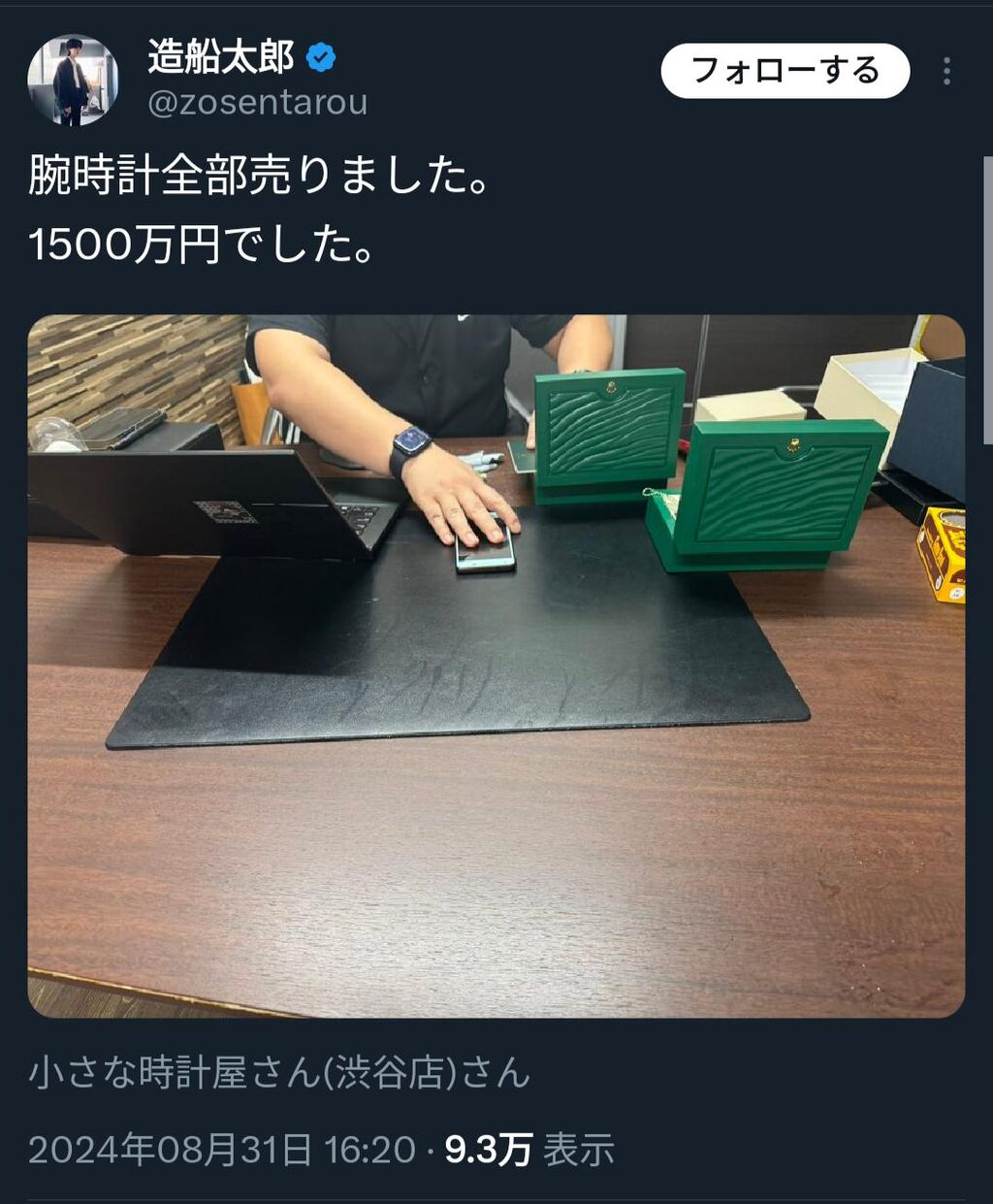 時計を売っぱらい7350万円確保、全額メガビッグへ