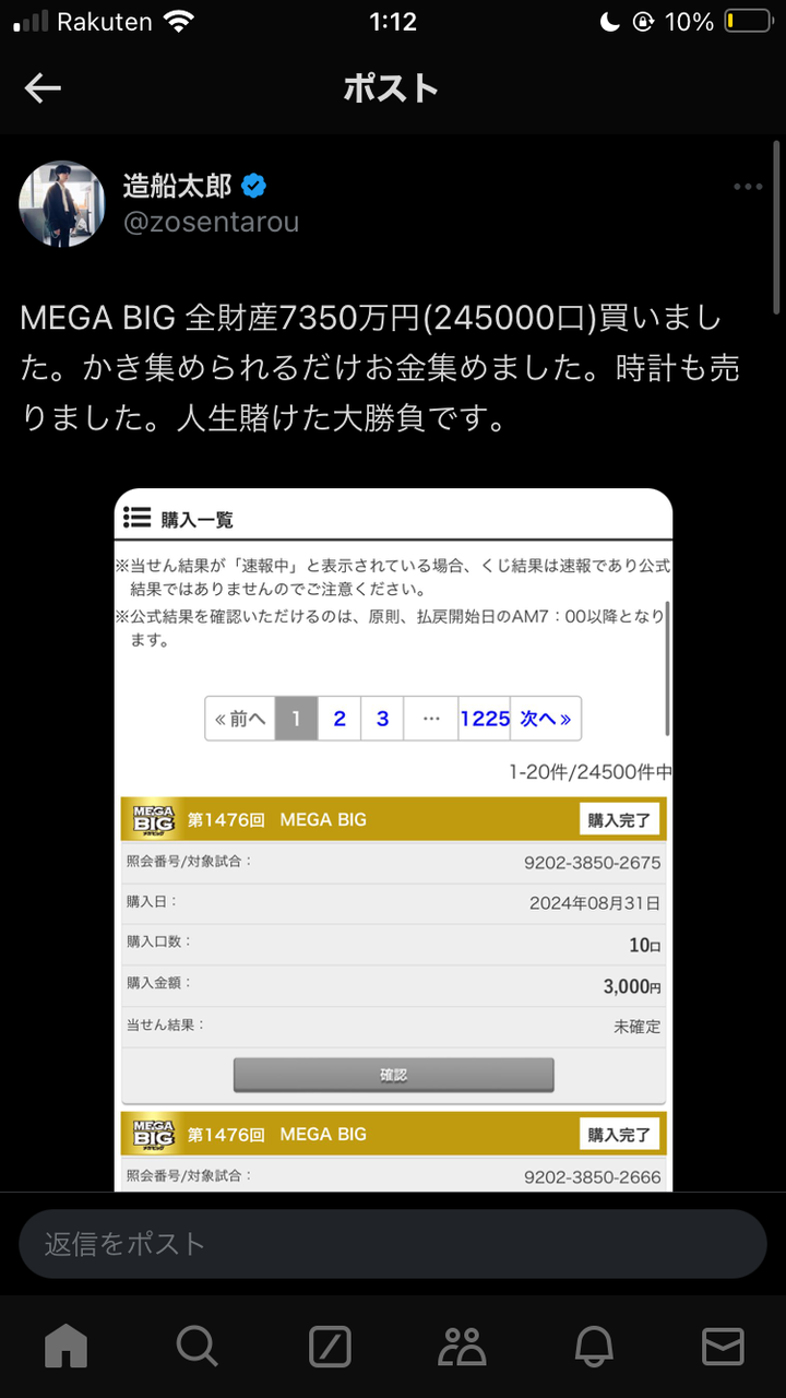 【画像あり】宝くじ7350万円分購入する猛者が現る!
