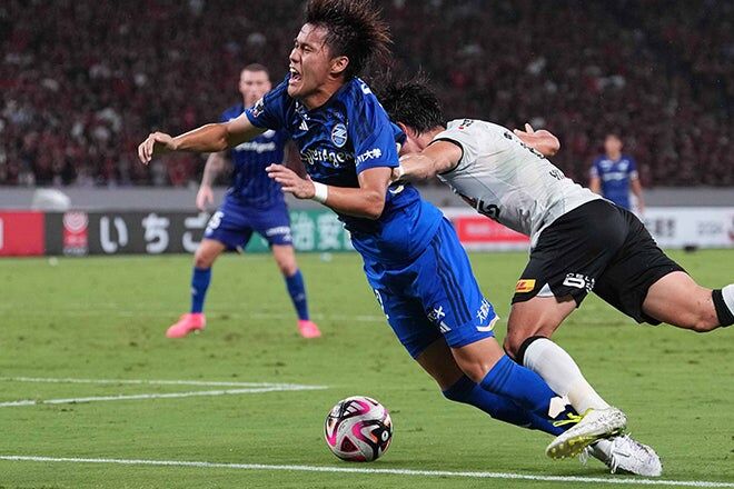 引っ張ると言うよりガッツリ足掛けてる写真(Soccer Digest Web)