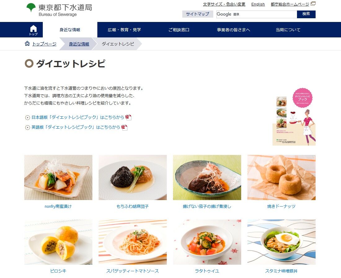 下水道局「生活排水中の油を減らすためにダイエットレシピサイトを運営します!」