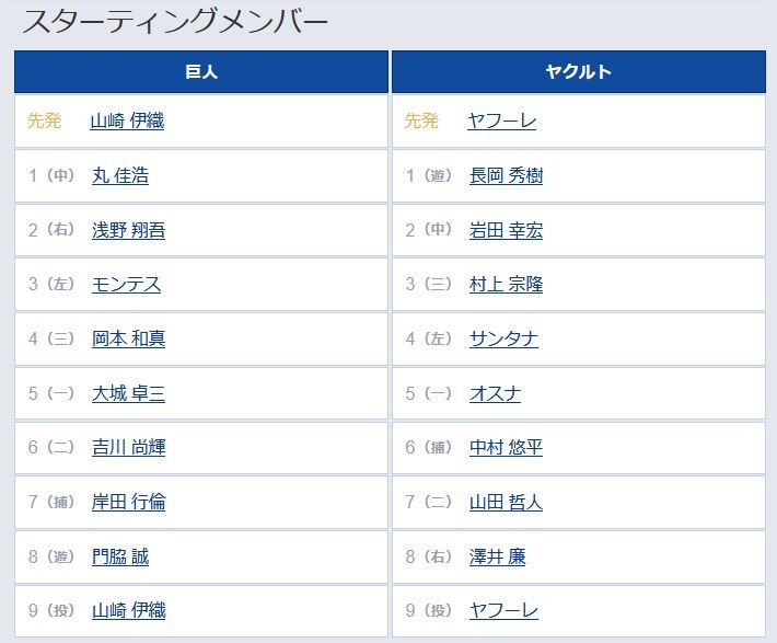 【巨人対ヤクルト20回戦】5(一) 大城 卓三 7(捕) 岸田 行倫
