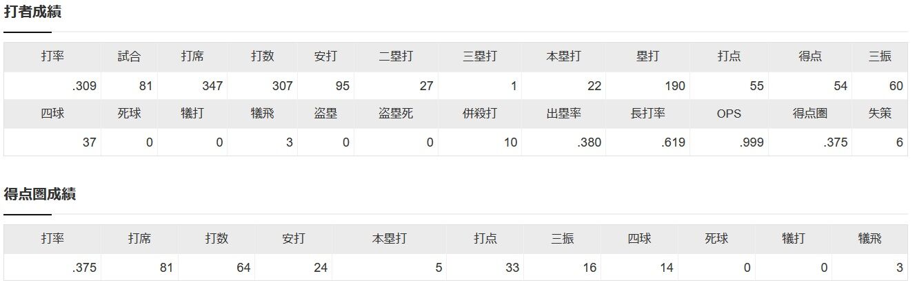 Tーオースティン .309 22 55 ops.999 ←こいつwwwwww