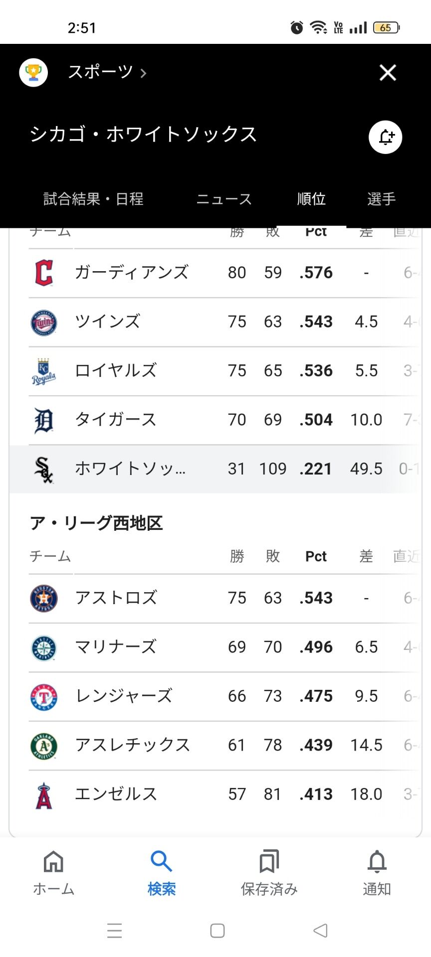 ホワイトソックスさん、夢のシーズン110敗到達まで残り1w w w w w w w w w w w w w w w w w