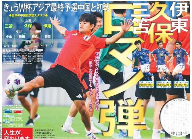 そんななか、4日の練習後の取材で、個の打開力に長けたこのトリオについて久保に尋ねると、「その名前だけ並べたらロマンがあるかもしれないですけど、それ相応のリスクもあるわけで、それを決めるのは僕でも皆さんでもなく監督だと思う」としつつ、実現した場合に意識する点をこう述べた。