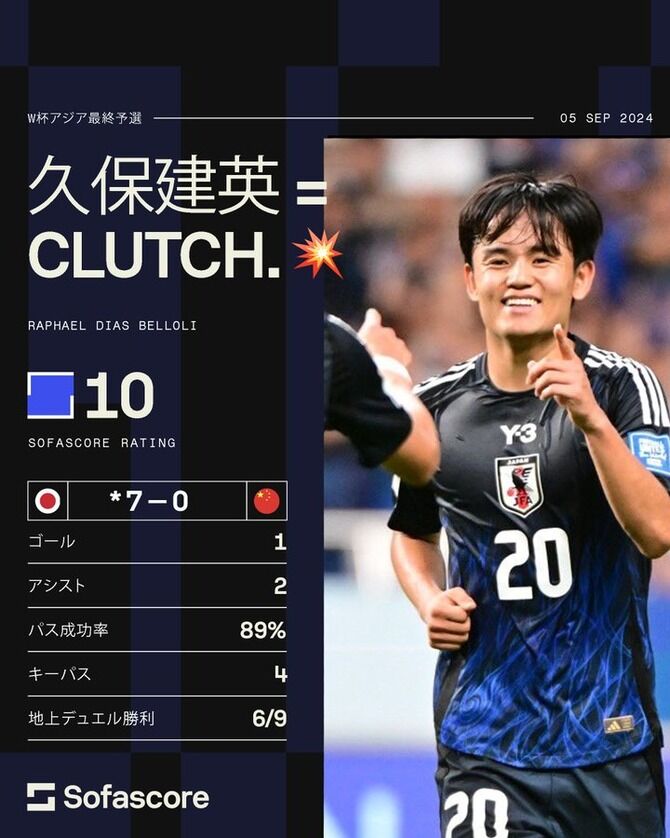 【朗報】サッカースレお前ら「久保調子悪いな」「久保に渡すな」sofascore「久保10点満点!最強!」←これwww