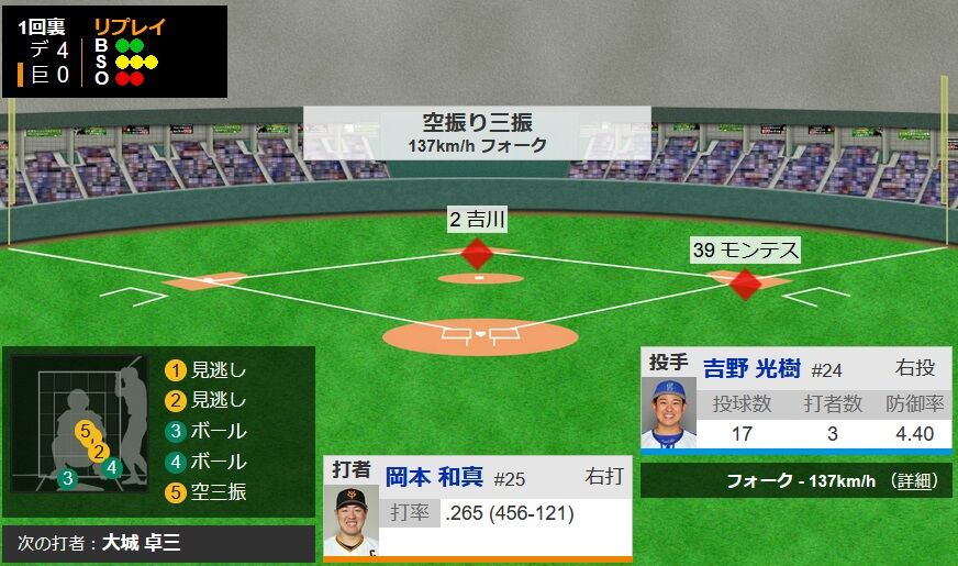 【巨人対DeNA20回戦】巨人の4番…